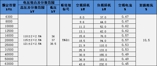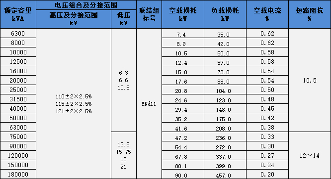 110kV級 11型三相雙繞組無勵磁調(diào)壓電力變壓器